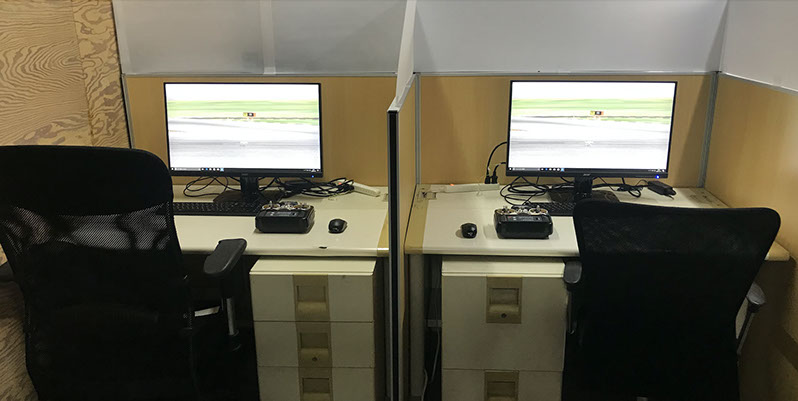教室はパーテーションで三密を回避した専用デスクによるシミュレーションでの講習です。