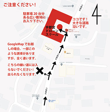 4番バス停 宇都宮美術館、帝京大学行き方面に乗り「大曽十文字」下車、吉野家とココスの交差点を北に徒歩150m道路沿西方(バス停から徒歩約2分)