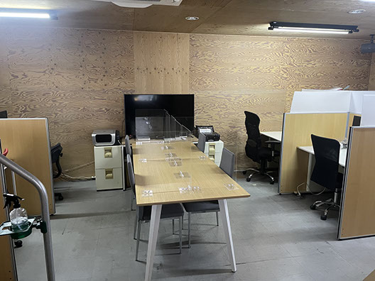 全室、感染防止対策済み、次亜塩素酸ナトリウム完全消毒、各デスクパーティション三密防止設置、2名限定教室のためご希望の場合は別階上で広々講習が受けられます。