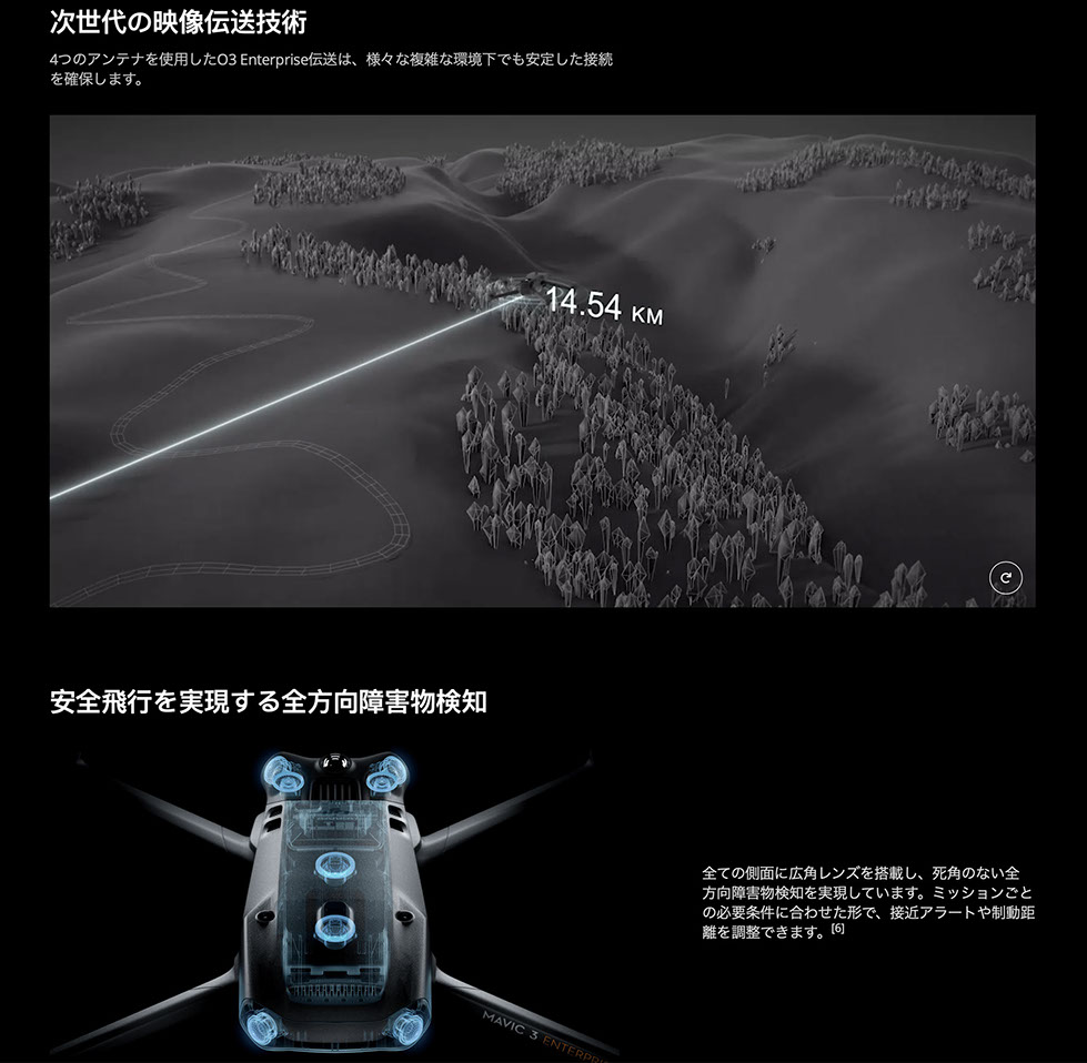 ただいま、DJIより最新機種の 「MAVIC 3 Enterpriceシリーズ」を発売しております。計測、ビルメンテナンス。建設マネージメントなど幅広い業務用として完全対応した最も安定した最新機種ですので、ぜひご検討ください。