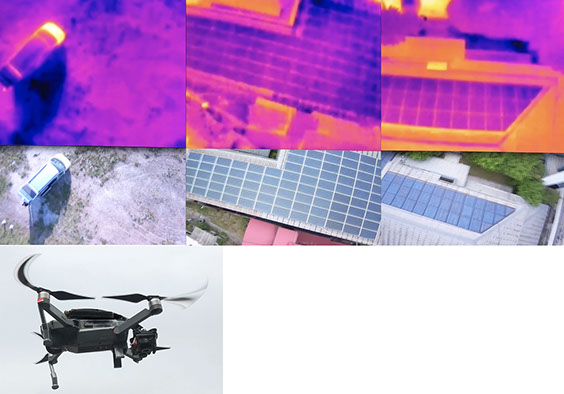 Mavic3・MavicPro・Mavic2Pro・Inspire1・2 Matrice2〜6、その他ペイロードにより他社でも可能です。DJIドローン+赤外線FLIRを使用し画像伝送します。
